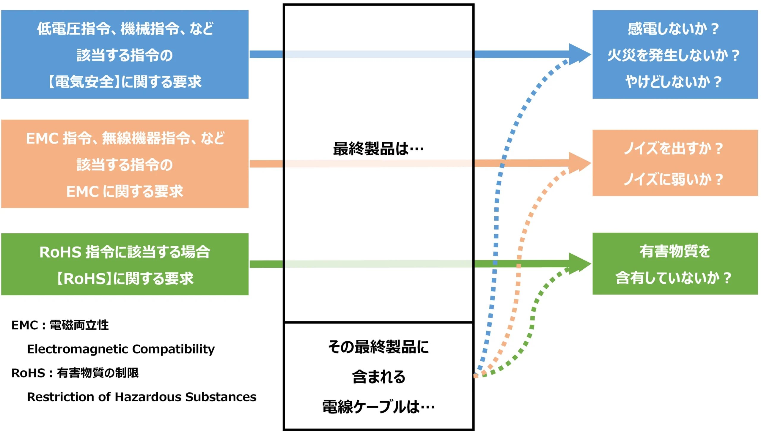 CEマーキングにおいて、適合宣言しようとする対象製品に用いる電線・ケーブルはとても重要です。